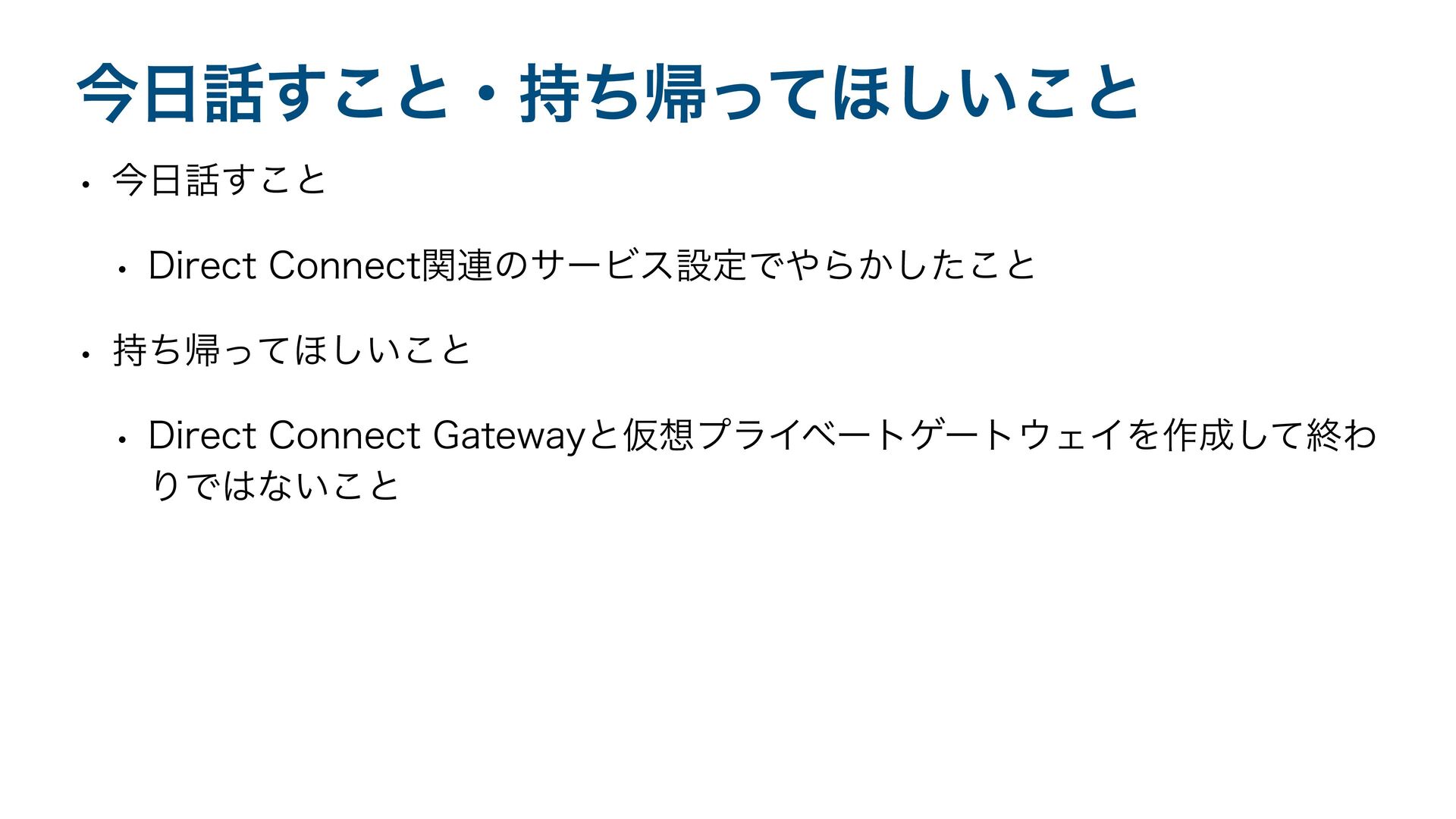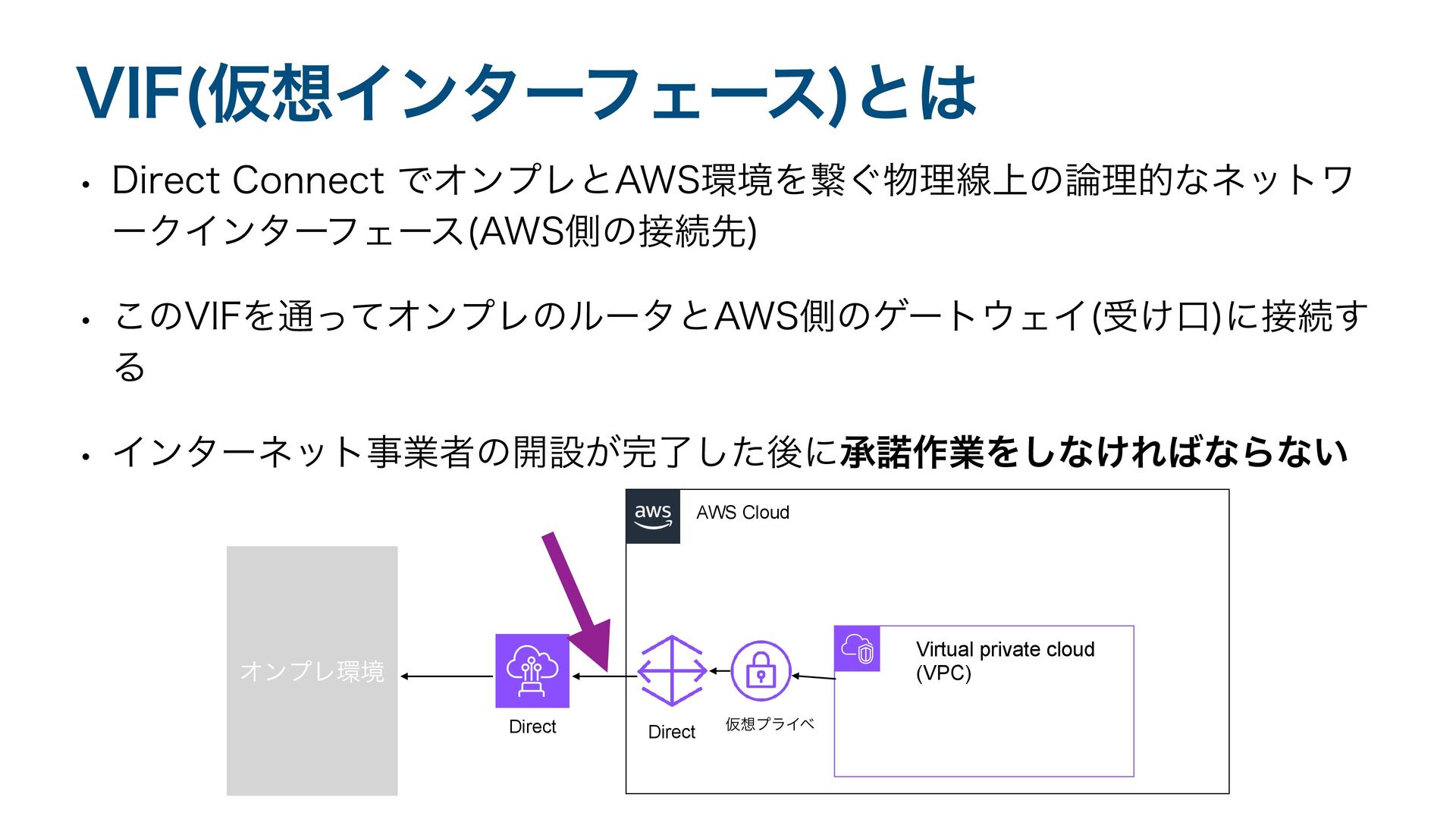 7*' ԾΠϯλʔϑΣʔε ͱ w %JSFDU$POOFDUͰΦϯϓϨͱ"84ڥΛܨ͙ཧઢ্ͷཧతͳωοτϫ ʔΫΠϯλʔϑΣʔε "84ଆͷଓઌ w ͜ͷ7*'Λ௨ͬͯΦϯϓϨͷϧʔλͱ"84ଆͷήʔτΣΠ
