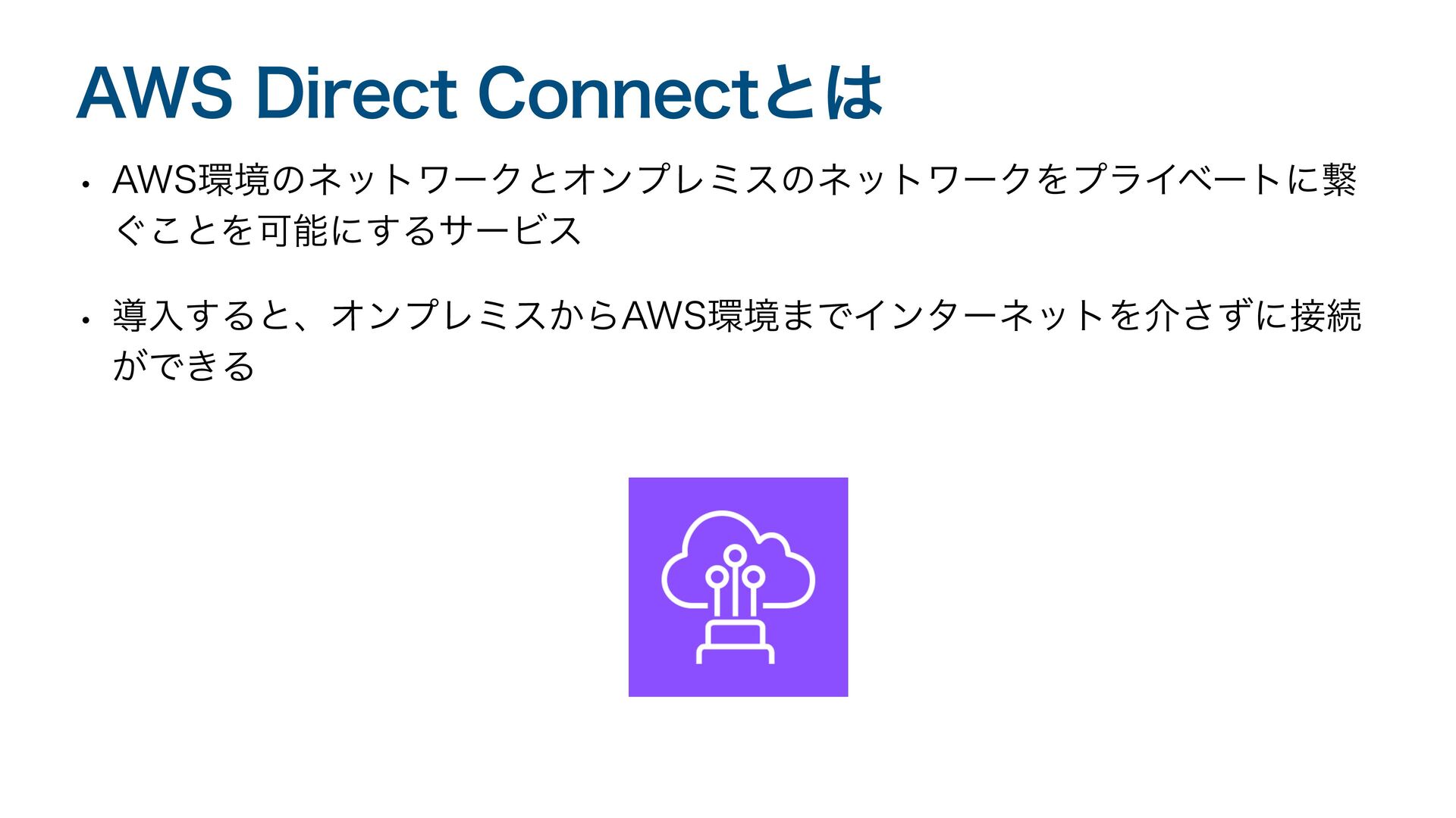 "84%JSFDU$POOFDUͱ w "84ڥͷωοτϫʔΫͱΦϯϓϨϛεͷωοτϫʔΫΛϓϥΠϕʔτʹܨ ͙͜ͱΛՄೳʹ͢ΔαʔϏε w ಋೖ͢ΔͱɺΦϯϓϨϛε͔Β"84ڥ·ͰΠϯλʔωοτΛհͣ͞ʹଓ ͕Ͱ͖Δ