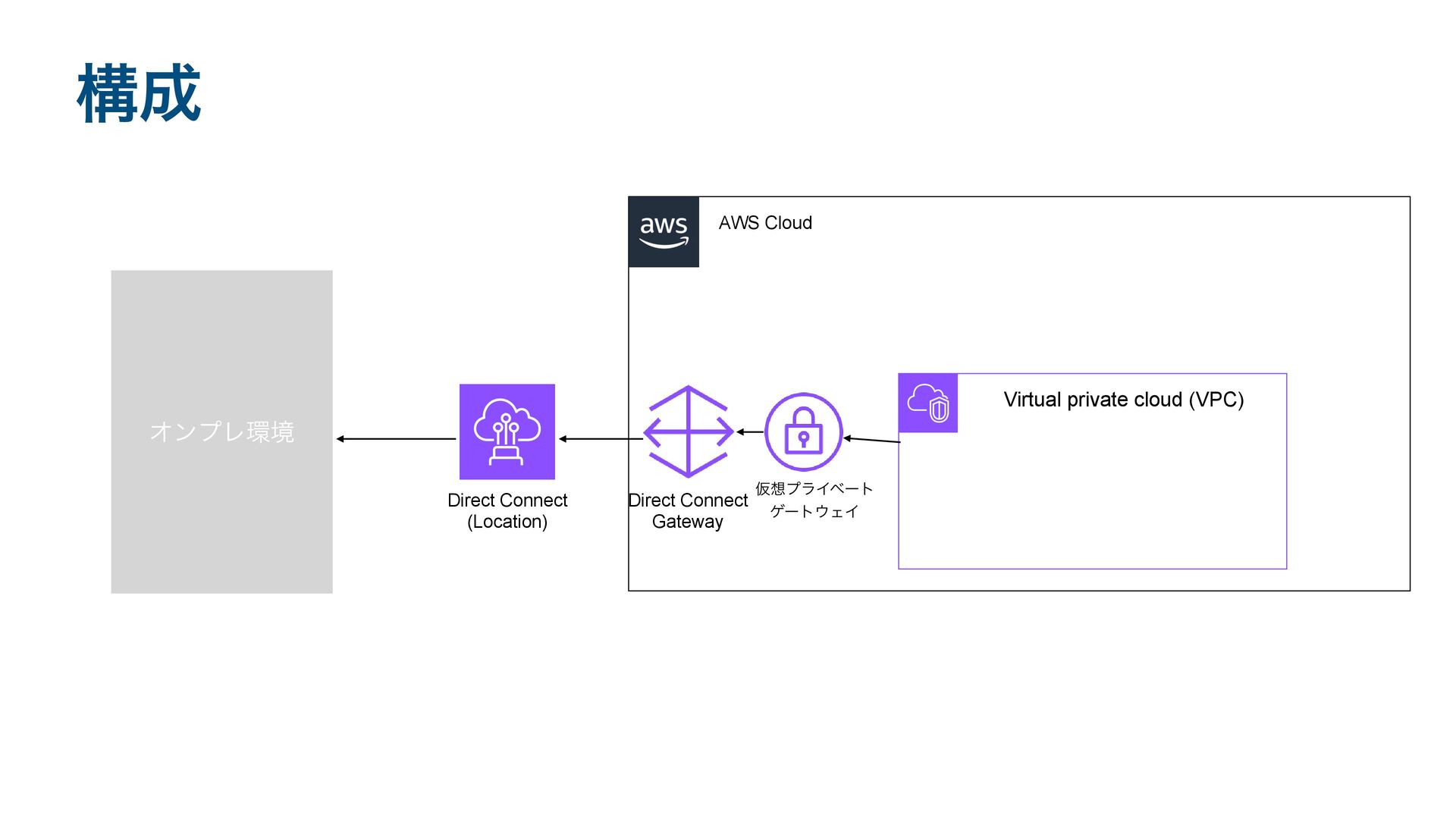 ड͚ޱ ʹଓ͢ Δ w Πϯλʔωοτࣄۀऀͷ։ઃ͕ྃͨ͠ޙʹঝ࡞ۀΛ͠ͳ͚ΕͳΒͳ͍ AWS Cloud Virtual private cloud (VPC) ΦϯϓϨڥ Direct Direct ԾϓϥΠϕ
