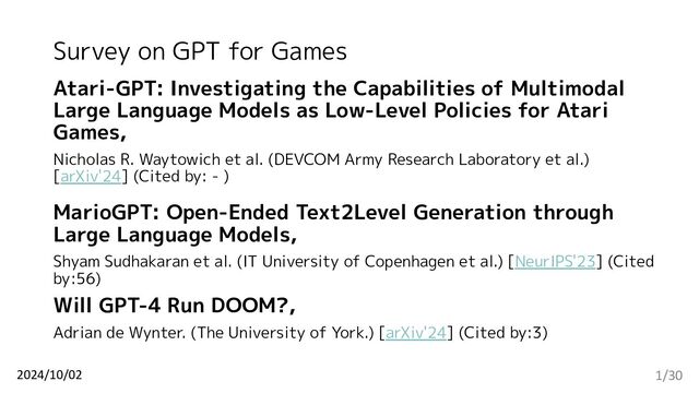 2.MarioGPT: Open-Ended Text2Level Generation through Large Language Models,