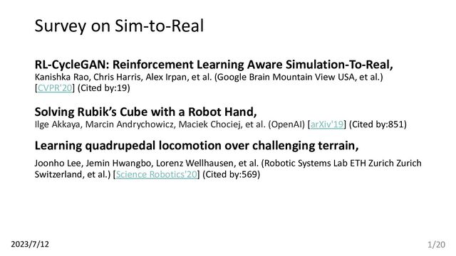 1.RL-CycleGAN: Reinforcement Learning Aware Simulation-To-Real, Kanishka Rao, Chris Harris, Alex Irpan, et al. (Google Brain Mountain View USA, et al.) [CVPR'20] (Cited by:19)