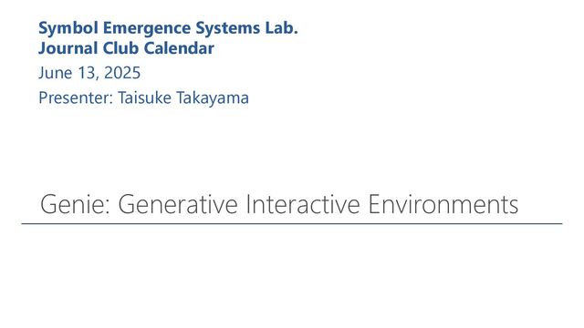 Genie: Generative Interactive Environments Symbol Emergence Systems Lab. Journal Club