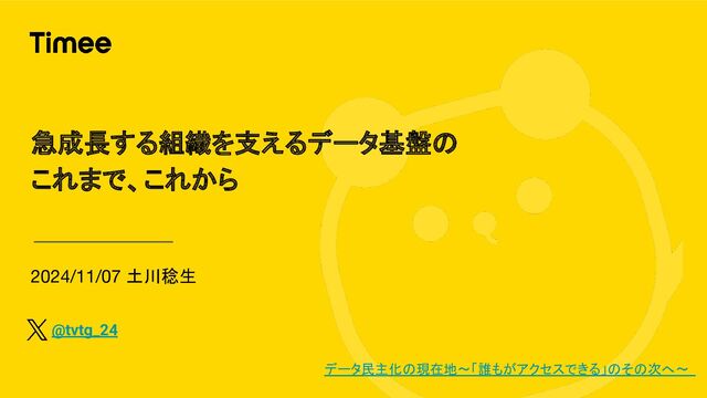 データ民主化の現在地〜「誰もがアクセスできる」のその次へ〜 の登壇資料になります。