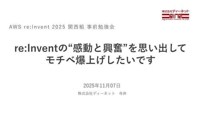 re:Invent 2024の参加体験を振り返り、楽しかったイベント(スポーツフォーラム、APJ Party、re:Play)や失敗談(セッションで気絶、高額キットカット購入)を共有。2025年はワークショップ重視で「絶対に気絶しない」計画と、現地での実用的なTips(靴選び、喉ケア、体力管理)を紹介する事前勉強会資料。