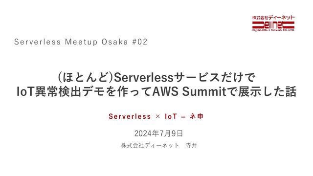 Serverless × IoT = ネ申 2024年7月9日 Serverless Meetup Osaka #02