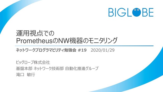 ※事前にGrafanaの設定でPrometheusサーバを登録しておく Metrics (PromQL) irate(ifHCInOctets{ifAlias=~".*$DescPhrase.*?", instance=~"$Hostname", ifName=~"$Interface"}[2m]) * 8 irate(ifHCOutOctets{ifAlias=~".*$DescPhrase.*?", instance=~"$Hostname", ifName=~"$Interface"}[2m]) * 8 Visualization Left Y -> Unit -> Data Rate -> bits/sec Left Y -> Unit -> Data Rate -> bits/sec 備考 prometheus.ymlのscrape_intervalの二倍の値を赤字部分に 指定する。 prometheus.ymlのscrape_intervalの二倍の値を赤字部分に 指定する。 PromQLでのトラフィックレート集計はirate関数(従来の監視ツールのトラフィックレートと同等の値を算出)を利用。 Variablesで指定した各キーワードを条件に指定して、合致するデータを描写している 構築手順① DashBoardの作成画面にて、「Add Query」を選択する 構築手順② 下記一覧表に記載している三つの設定を投入して、グラフを作成する。 ※[参考]グラフ作成画面を参照 グラフ定義一覧