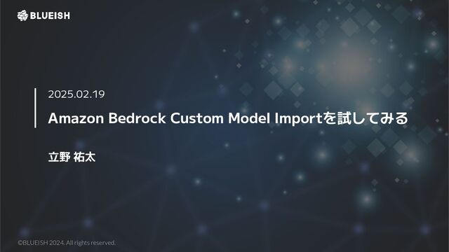 Amazon Bedrock Custom Model Importを試してみる 立野 祐太 2025.02.19 ©BLUEISH 2024.