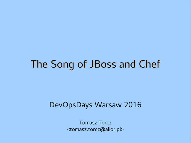 JBoss EAP is a heavy-duty Java application server. It's a perfect match for huge banking applications, but also perfect impedance mismatch with DevOps processes. This is the story how we persuaded the Behemoth to work with Chef automation. The goal was to manage multitude of our JBoss clusters and be able to rebuild the infrastructure on-demand.