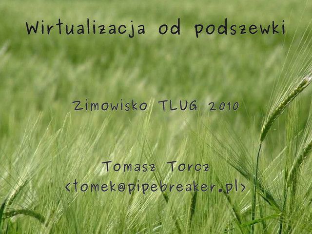 Prezentacja w ramach Zimowiska TLUG 2010. http://www.kzubik.vemail.pl/ZimowiskoTLUG2010/wirtualizacja_od_podszewki.ogg 485 M