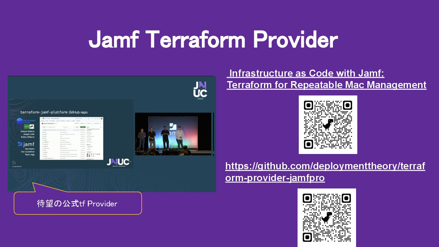 for Repeatable Mac Management 待望 公式tf rovider https://github.com/deploymenttheory/terraf orm-provider-jamfpro