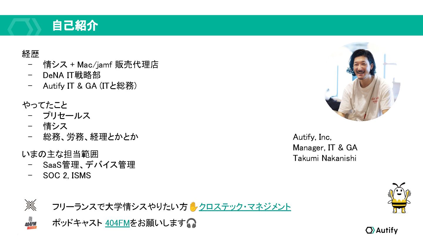 - utify & ( と総務) utify, nc, anager, & akumi akanishi ポッドキャスト 404 をお願いします🎧 フリーランスで大学情シスやりたい方✋クロステック・マネジメント やってたこと - プリセールス - 情シス - 総務、労務、経理とかとか いま 主な担当範囲 - aa 管理、デバイス管理 - 2,