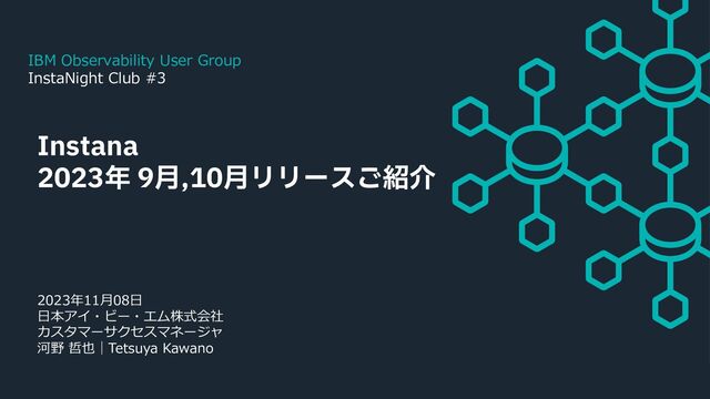 IBM Observability User Group InstaNight Club #3 2023年11⽉08⽇ ⽇本アイ・ビー・エム株式会社 カスタマーサクセスマネージャ