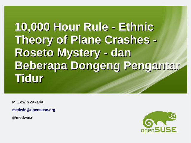 Theory of Plane Crashes - Theory of Plane Crashes - Roseto Mystery - dan Roseto Mystery - dan Beberapa Dongeng Pengantar Beberapa Dongeng Pengantar Tidur Tidur M. Edwin Zakaria [email protected] @medwinz