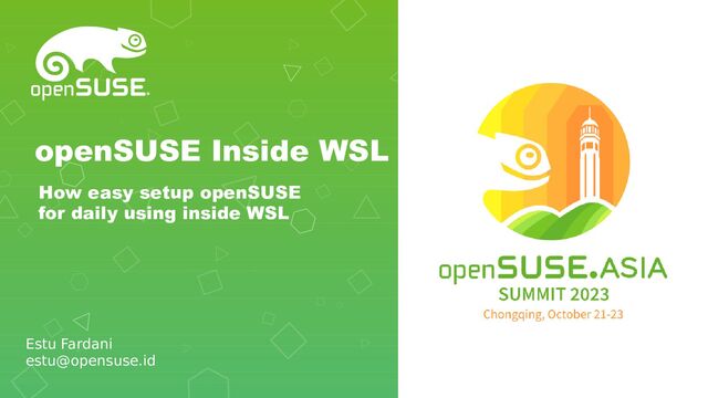 How Install WSL • How add openSUSE Leap • How add Tumbleweed • Getting Started after install • How upgrade to Slowroll • Tuning and Backup • What next ?