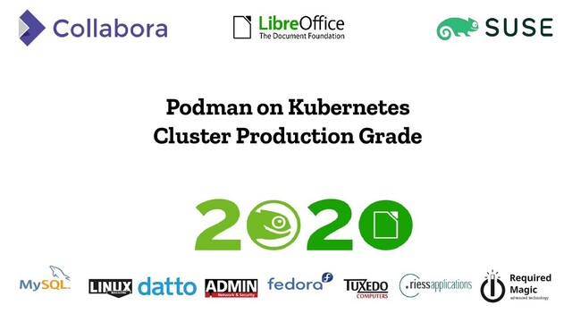 • Cloud provider with ISO upload is minority • Or run openSUSE is limited (Leap 42.3, 15(?)) • Podman + Cri-O on Kubernetes Platform, where?
