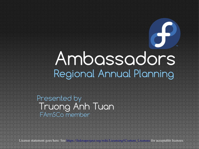and running phases Main issues of the current process (AFAIS) How to improve the process to address those issues (IMO) And finally, open discussing with FAmSCo and Ambassador fellows Summary
