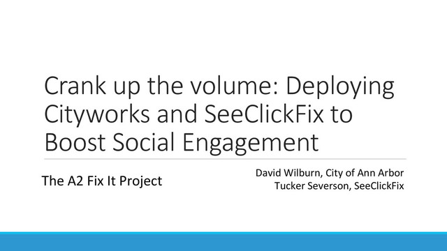 Crank up the Volume: Deploying Cityworks and SeeClickFix to Boost Social Engagement