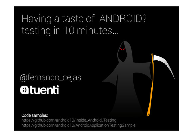 In this session we are gonna talk about available tools and practices that could help us write tests for the Android platform.
