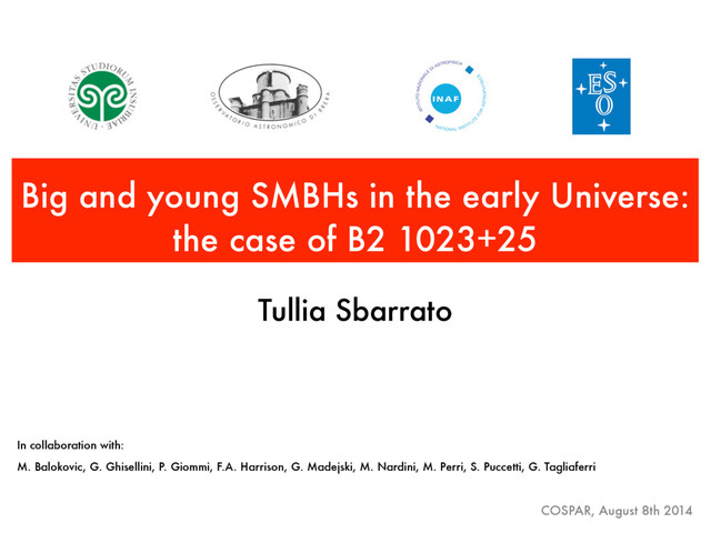 of B2 1023+25 Tullia Sbarrato COSPAR, August 8th 2014 In collaboration with: M. Balokovic, G. Ghisellini, P. Giommi, F.A. Harrison, G. Madejski, M. Nardini, M. Perri, S. Puccetti, G. Tagliaferri