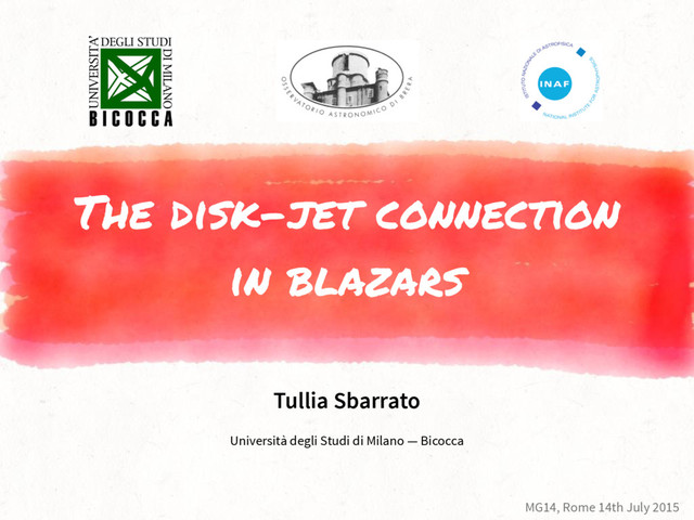 we study them? • jet power vs. accretion power • looking for different accretion regimes Outline large catalogs! gamma-rays radio MG14, Roma 14th July 2015