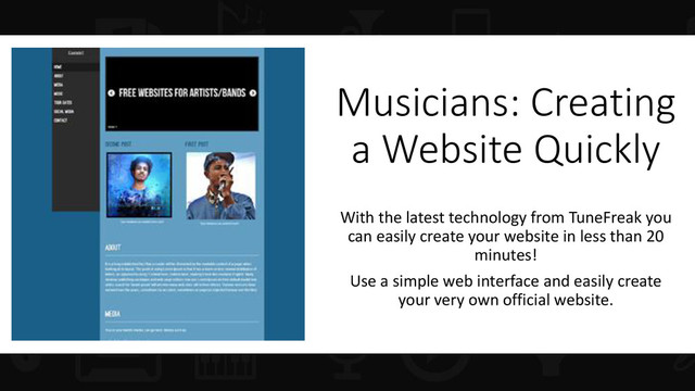 This shows musicians such as musical artists, DJs, bands and others how to create their professional official websites.