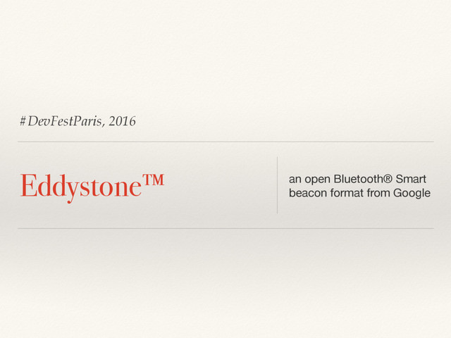 Ox16 OxFEAA 0x10 Tx URL Scheme Encoded URL (up to 17 bytes) URL Scheme Prefix 0x00 http://www. 0x01 https://www. 0x02 http:// 0x03 https:// Url extension 0x00 .com/ 0x01 .org/ 0x02 .edu/ … … ❖ http://www.droidcon.com/paris http://www. d r o i d c o n .com/ p a r i s 0x00 0x64 0x72 0x6F 0x69 0x64 0x63 0x6F 0x6E 0x00 0x70 0x61 0x72 0x69 0x73