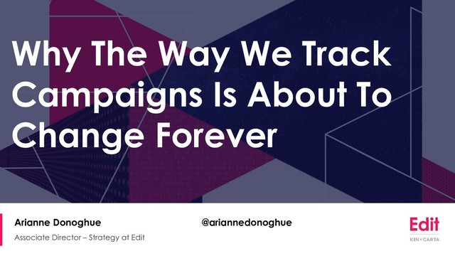 In this session Arianne will take you through what you need to know about privacy, browser ad blocking and talk about whether or not it's perhaps the nature of our campaigns that needs to change, rather than how we track them.