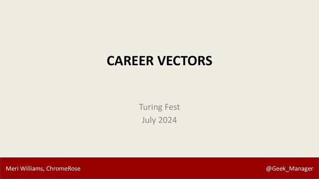 Everything around us is constantly changing and developing — it’s tough to keep up with, let alone get ahead of. So how do we navigate our own careers and those of our teams with everything in flux? In this talk, Meri will introduce the concept of career vectors, which they have used in coaching hundreds of technical leaders over the years. You’ll learn tools for guiding your own career, those of your team, and even for communicating what types of opportunity is available at your organisation.
