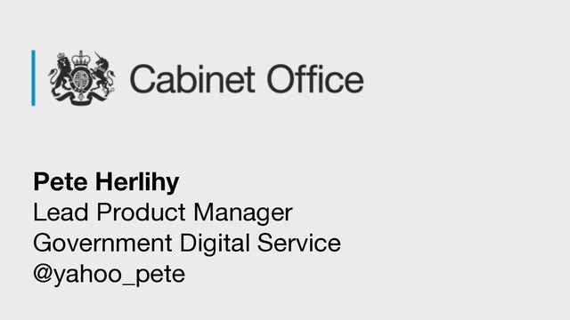 Pete Herlihy Lead Product Manager Government Digital Service @yahoo_pete