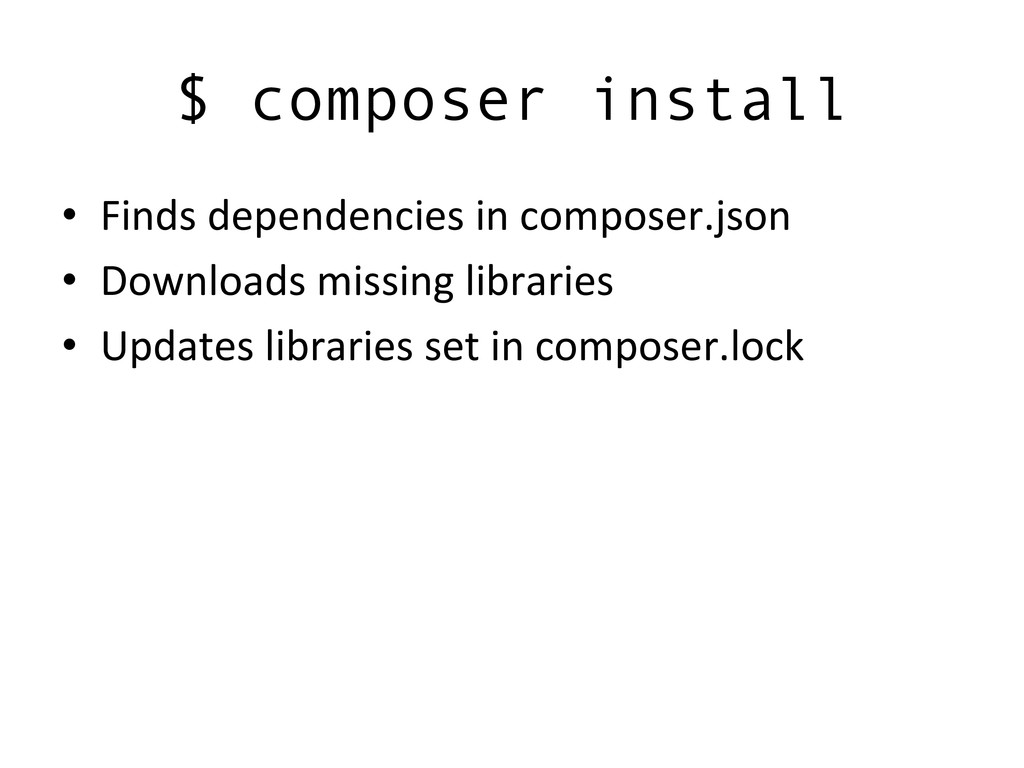 $ composer install • Finds dependencies in composer.json •