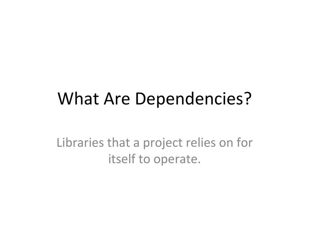 What Are Dependencies? Libraries that a project relies on