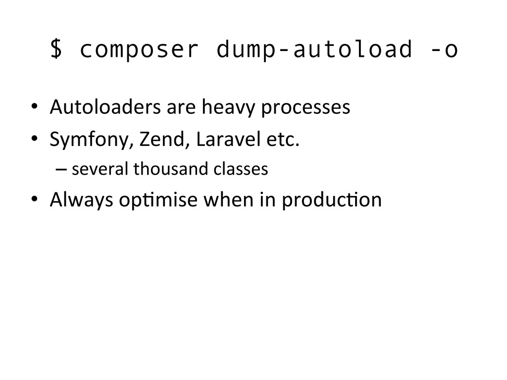 $ composer dump-autoload -o • Autoloaders are heavy processes