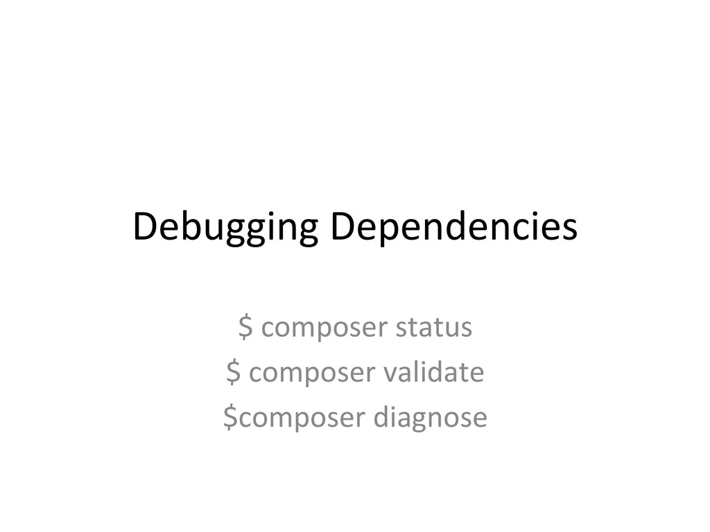 Debugging Dependencies $ composer status $ composer validate