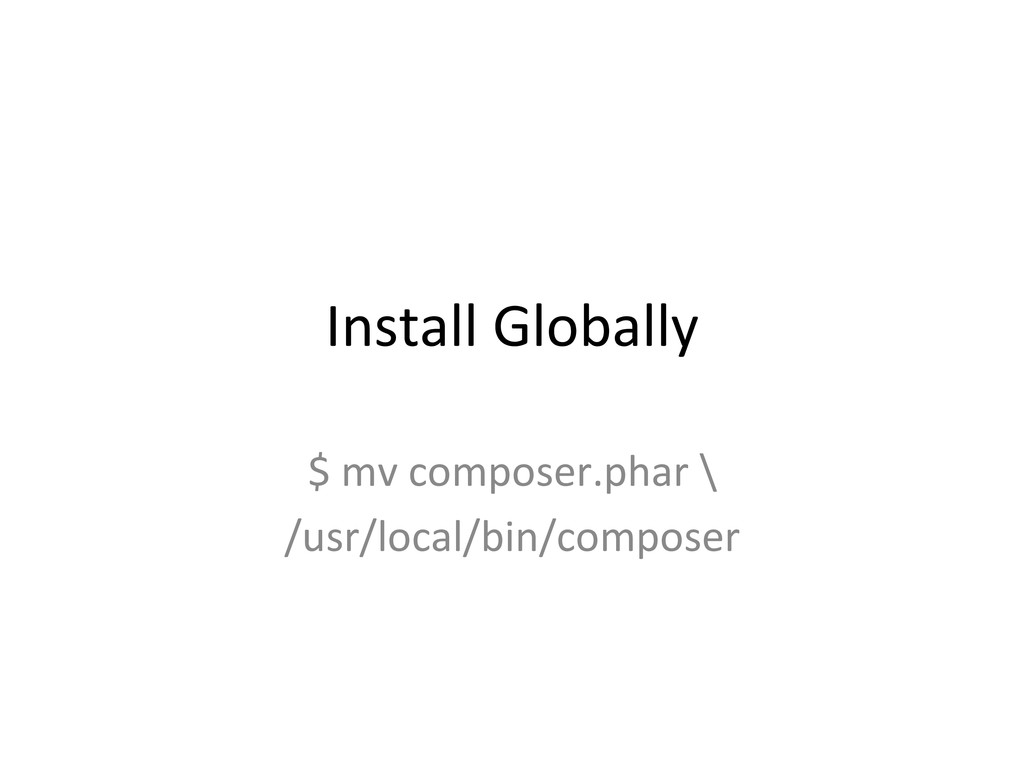 Install Globally $ mv composer.phar \ /usr/local/bin/composer
