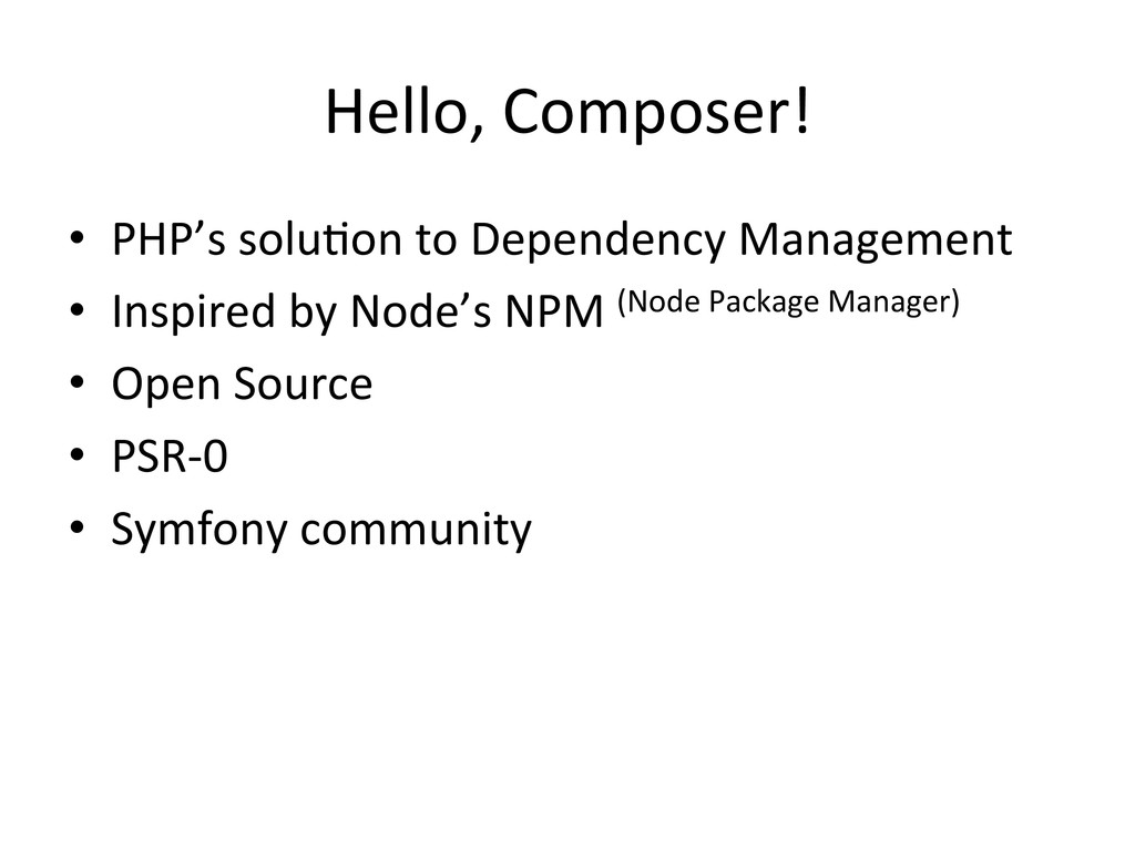 Hello, Composer! • PHP’s soluAon to Dependency Management