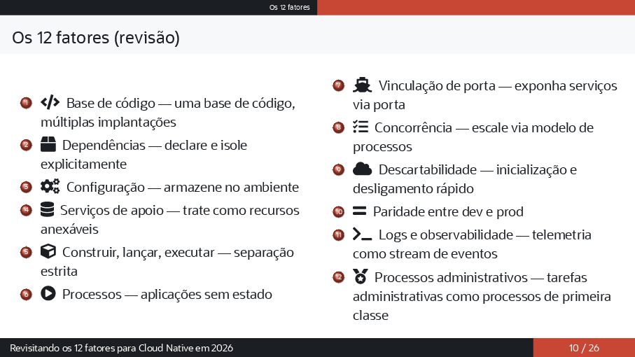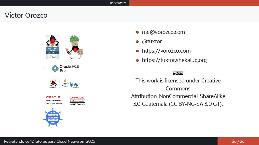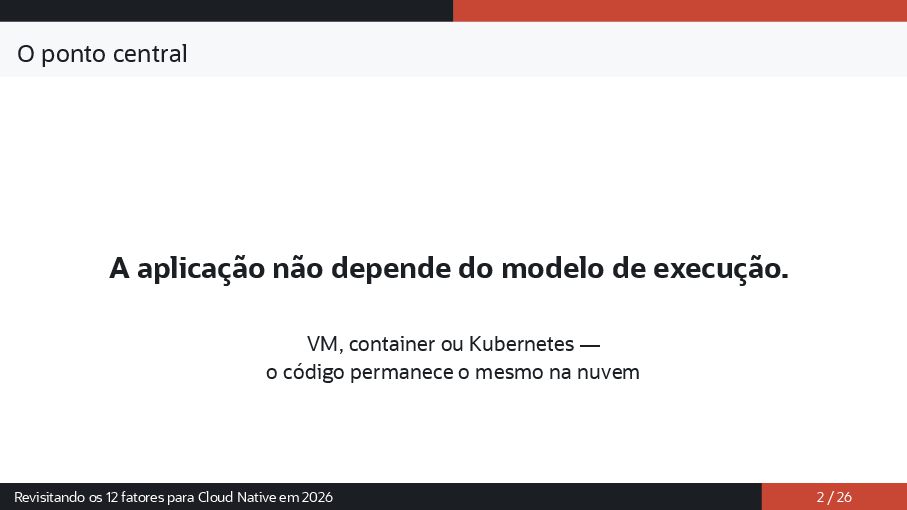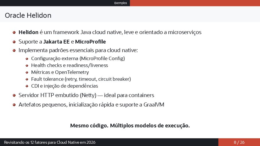 Nesta palestra revisitamos os 12 fatores sob a perspectiva de 2026 e discutimos o que realmente significa ser cloud native hoje. Mais do que seguir um checklist, o objetivo é construir aplicações que não dependam do modelo de execução — capazes de rodar em VM, containers ou Kubernetes sem reescrita. Usando Java e Helidon como exemplo, exploramos como princípios como configuração externa, observabilidade, build reprodutível e processos stateless garantem portabilidade real e resiliência em ambientes modernos.