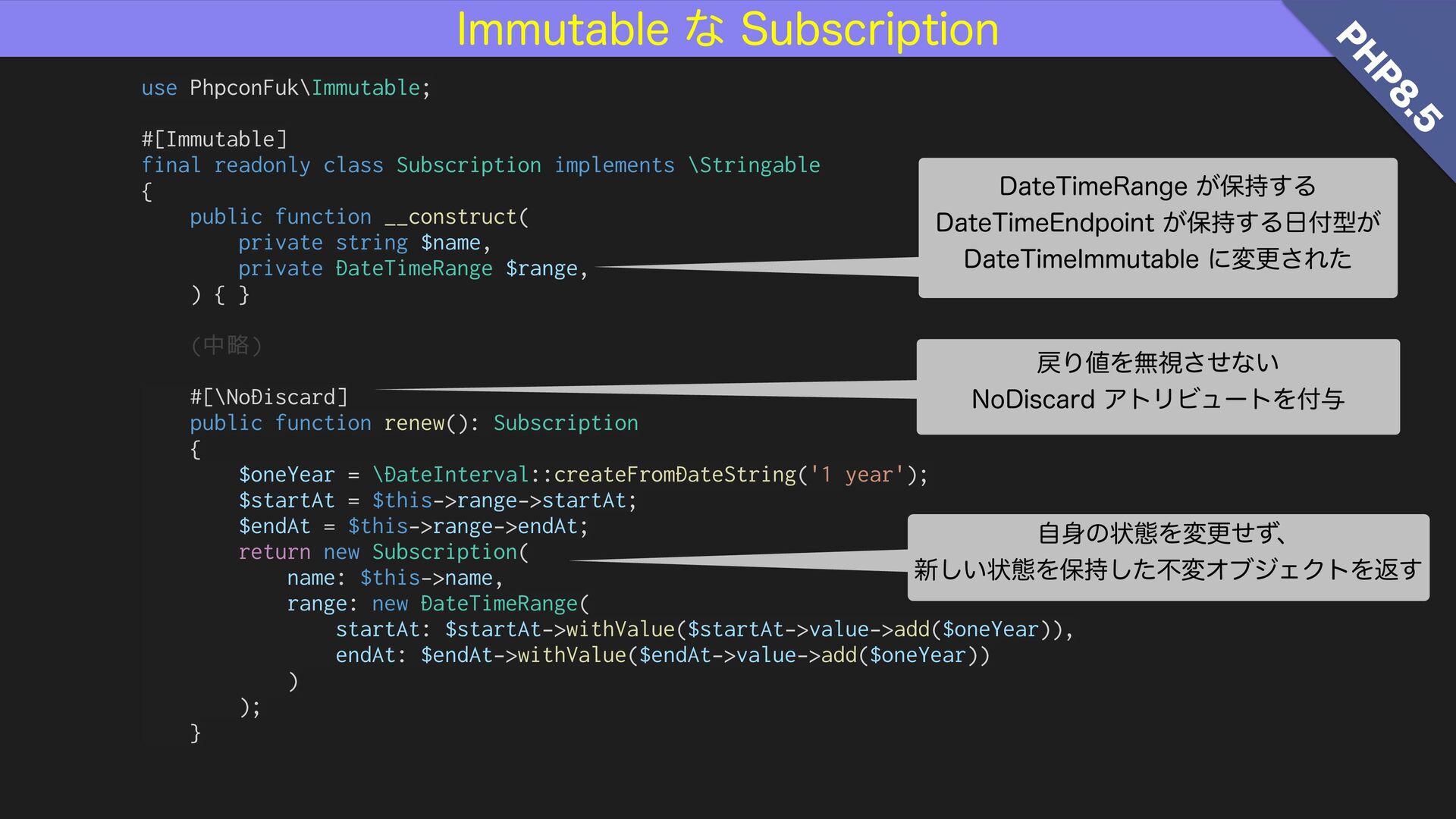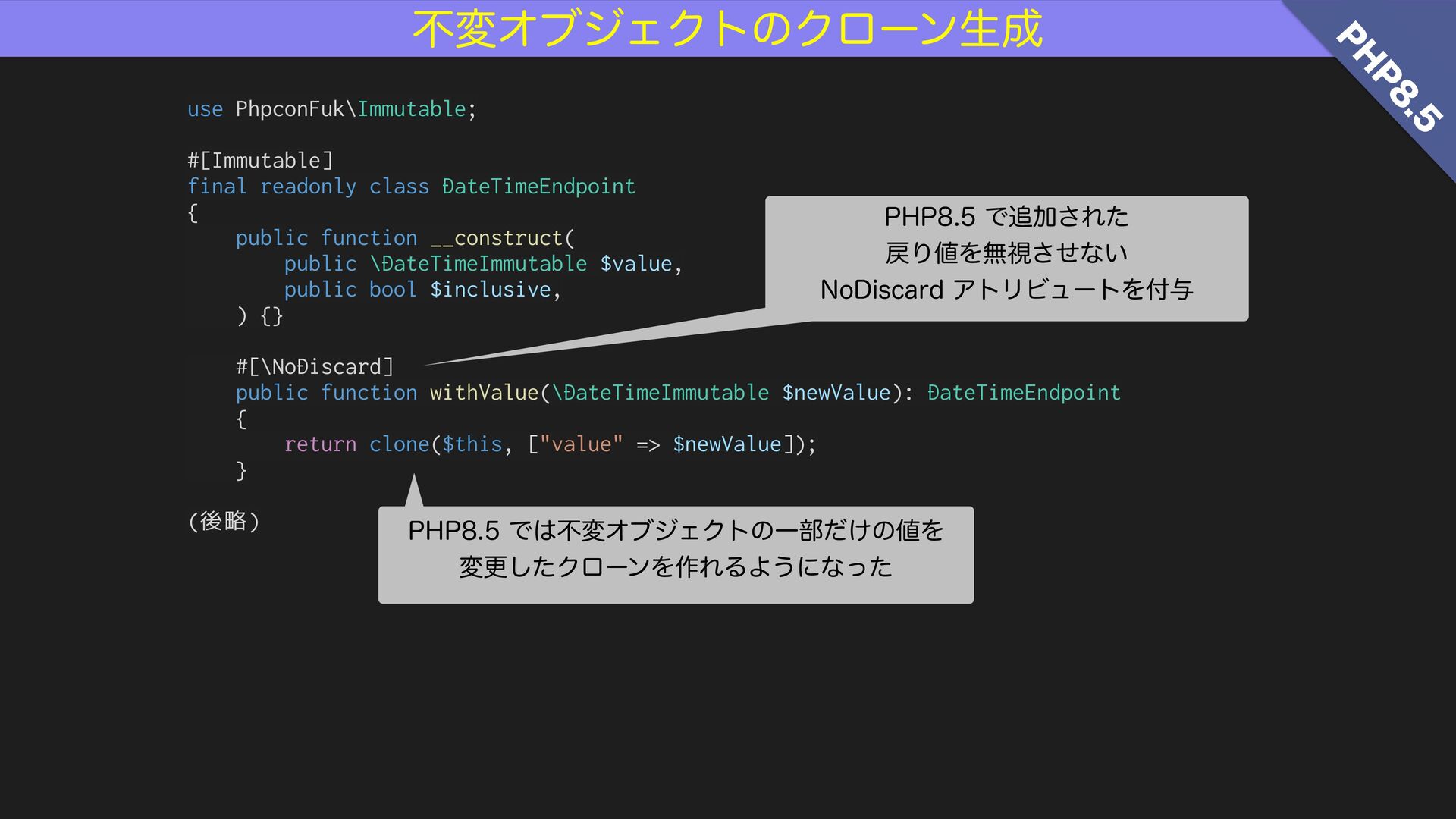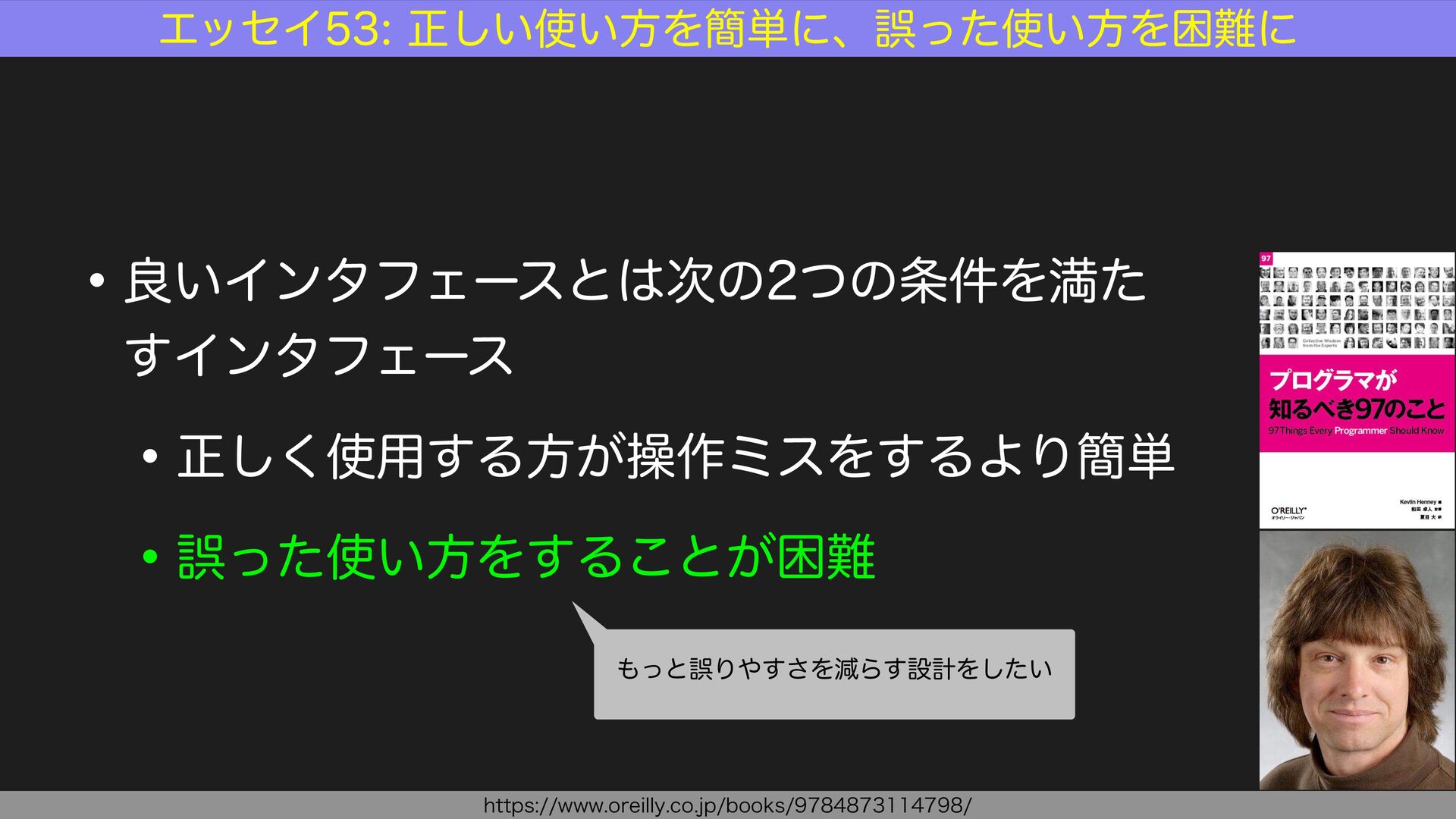PHPはバージョンを追う毎に機能が強化され、堅牢なコードを書くための機能が充実してきました。本講演ではPHP 8.4(および 8.5)をベースにして、誤りを想定してチェックするのではなく、そもそも誤りにくい設計とはどのようなものか、つまり「予防」の観点を軸足に、堅牢なコードを導くための様々な設計のヒントをご紹介します。
