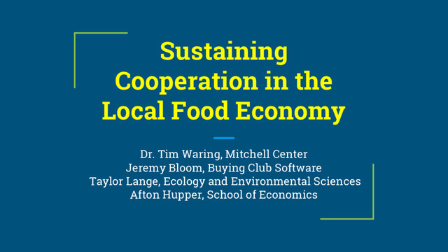 Speakers: Afton Hupper, Taylor Lange, Tim Waring, Local Food Lab, UMaine