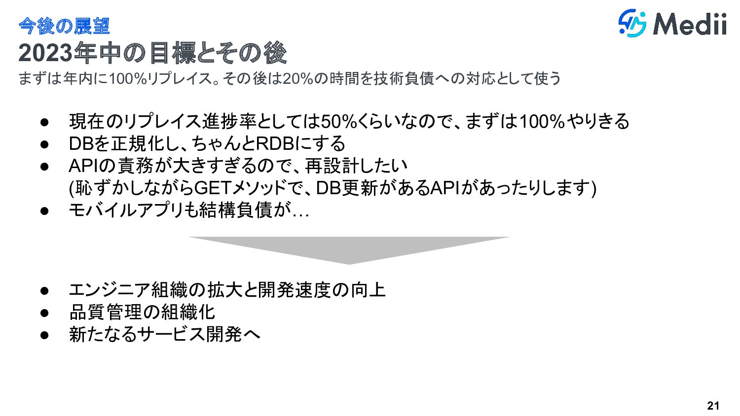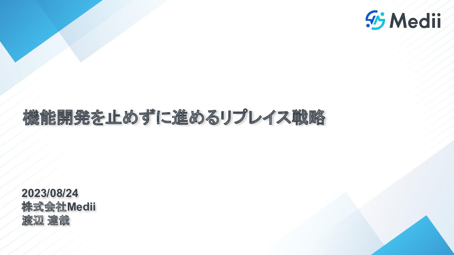 2023/08/24 株式会社Medii 渡辺 達哉 機能開発を止めずに進めるリプレイス戦略