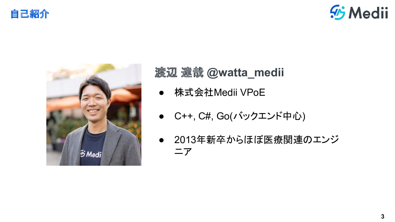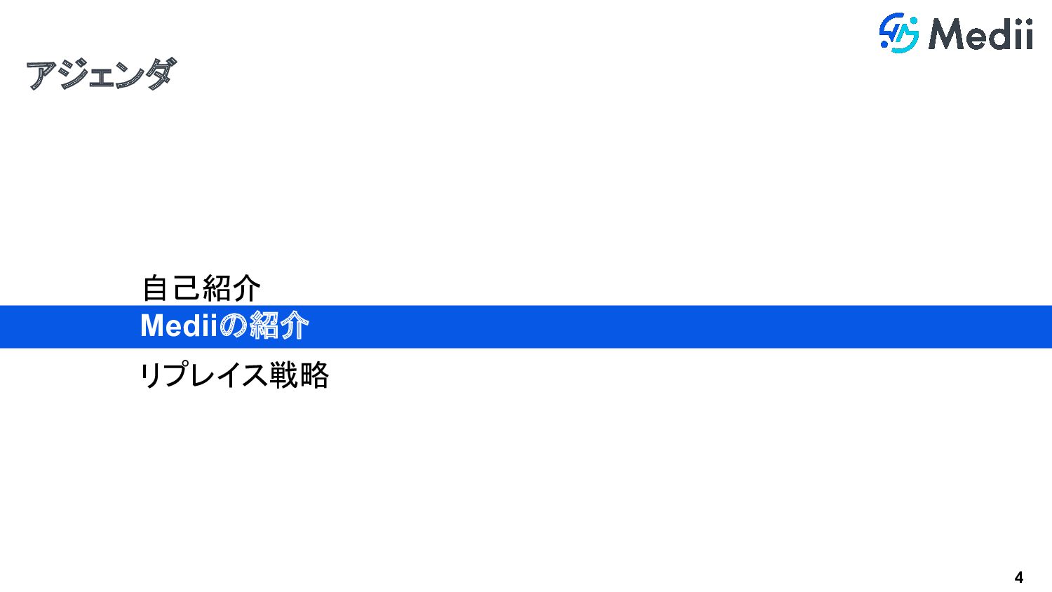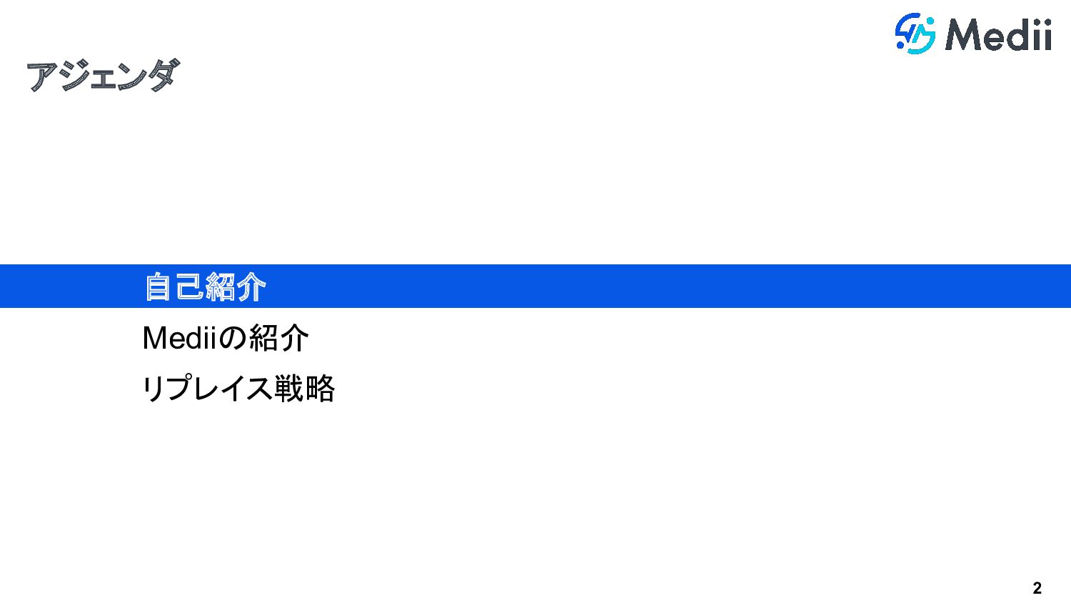 2 アジェンダ 自己紹介 Mediiの紹介 リプレイス戦略