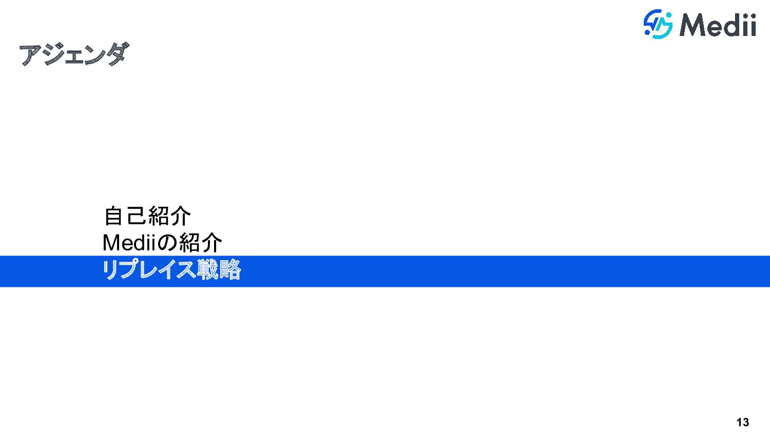 13 アジェンダ 自己紹介 Mediiの紹介 リプレイス戦略