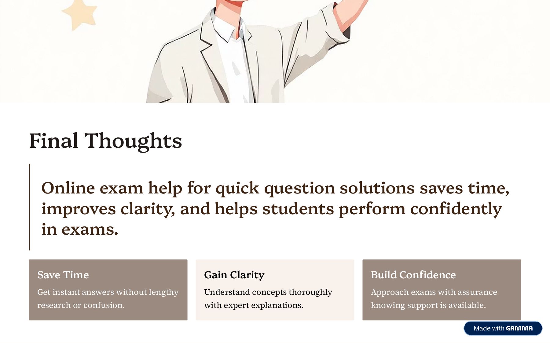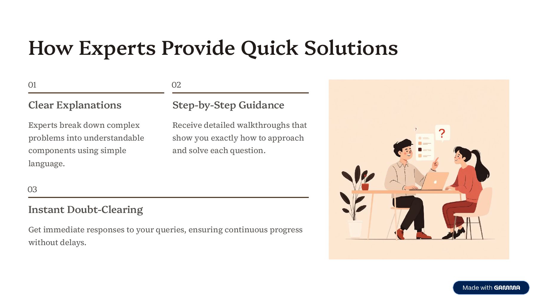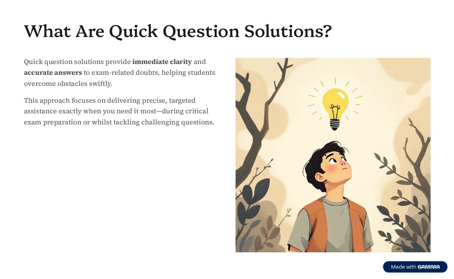 time, improves clarity, and helps students perform confidently in exams. Save Time Get instant answers without lengthy research or confusion. Gain Clarity Understand concepts thoroughly with expert explanations. Build Confidence Approach exams with assurance knowing support is available.