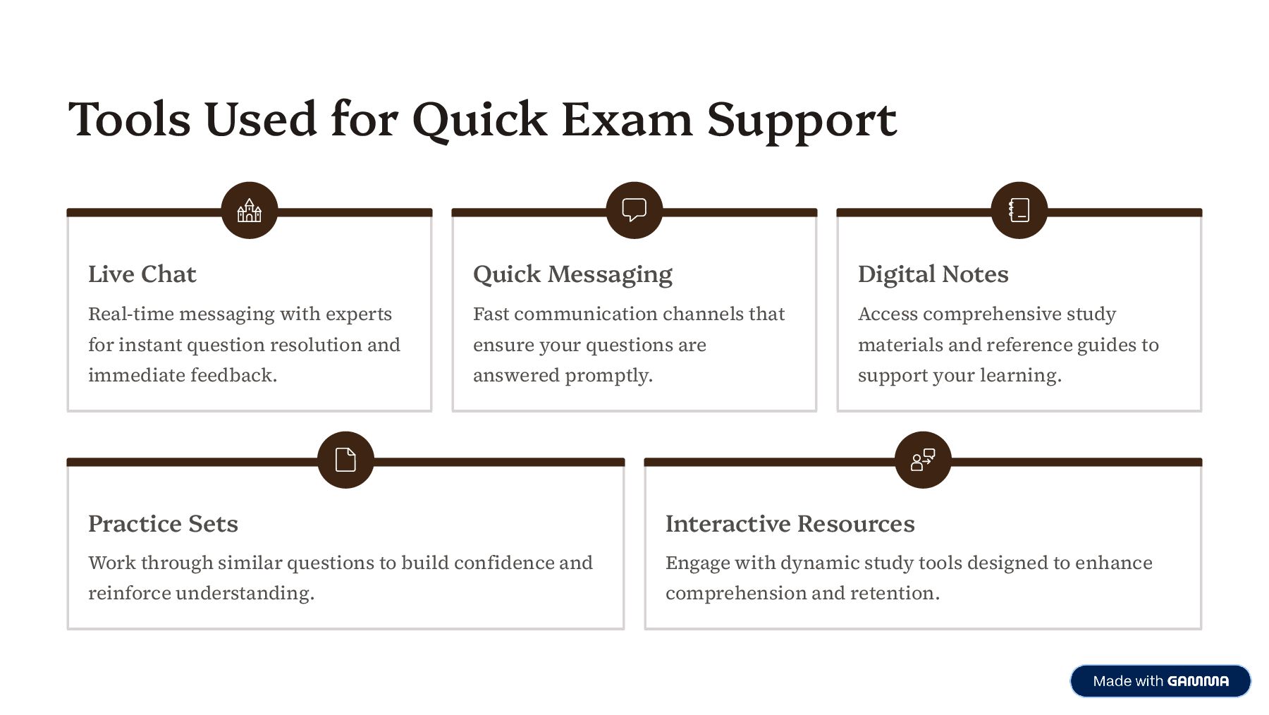 with experts for instant question resolution and immediate feedback. Quick Messaging Fast communication channels that ensure your questions are answered promptly. Digital Notes Access comprehensive study materials and reference guides to support your learning. Practice Sets Work through similar questions to build confidence and reinforce understanding. Interactive Resources Engage with dynamic study tools designed to enhance comprehension and retention.