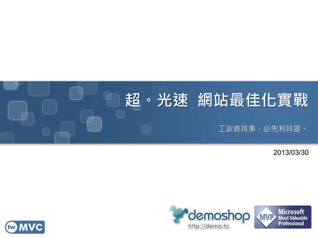 講者:demo http://demo.tc (現任MVP、ASP.NET MVC4網站開發美學作者、twMVC核心講者)
