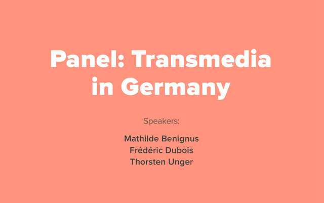 From major film production companies to independent risk takers, this session draw on practical examples from some of the best webdocumentaries and game experiences Made in Germany.