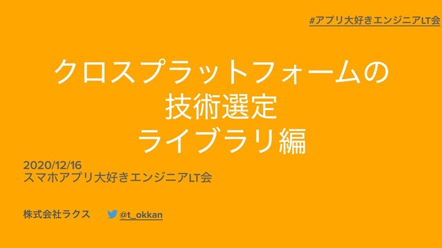 2020年12月16日に開催された「スマホアプリ大好きエンジニアLT会」で発表したスライドです。 TechブログのURL:https://tech-blog.rakus.co.jp/entry/20201210/cross-platform