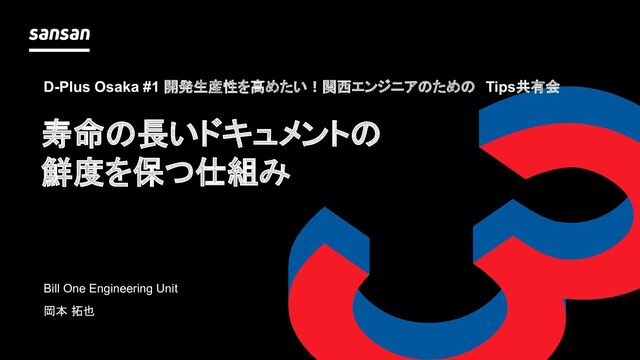 D-Plus Osaka #1 開発生産性を高めたい!関西エンジニアのための Tips共有会 寿命の長いドキュメントの 鮮度を保つ仕組み Bill One Engineering