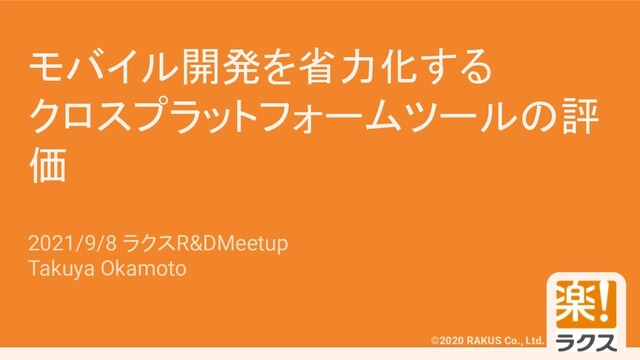 ©2020 RAKUS Co., Ltd. モバイル開発を省力化する クロスプラットフォームツールの評 価 2021/9/8 ラクスR&DMeetup Takuya