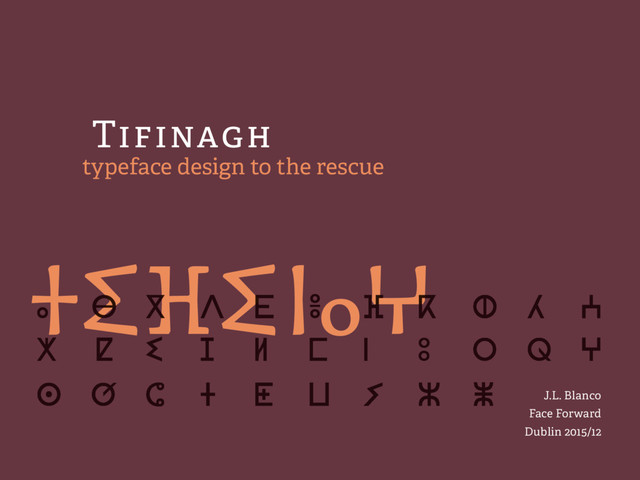These are the context and some of the questions that designers involved in the design of Tifinagh fonts in Morocco have faced in the last decade. They have led them to interesting explorations and singular results. The talk will show a glimpse of the history and development of the Tifinagh alphabet as the answers to these questions are analised. Whether the decisions taken by Tifinagh typeface designers will help survive and spread the script only time will tell.