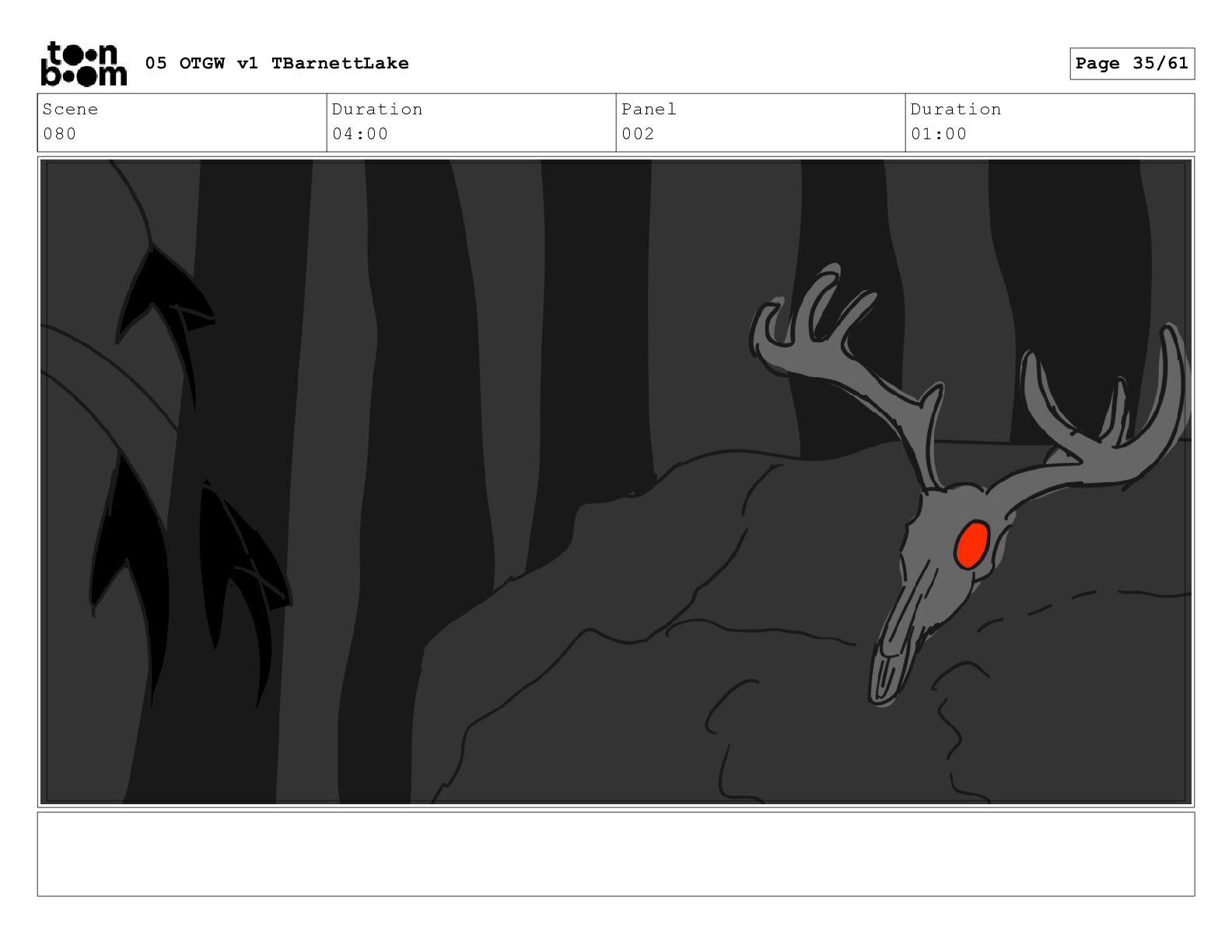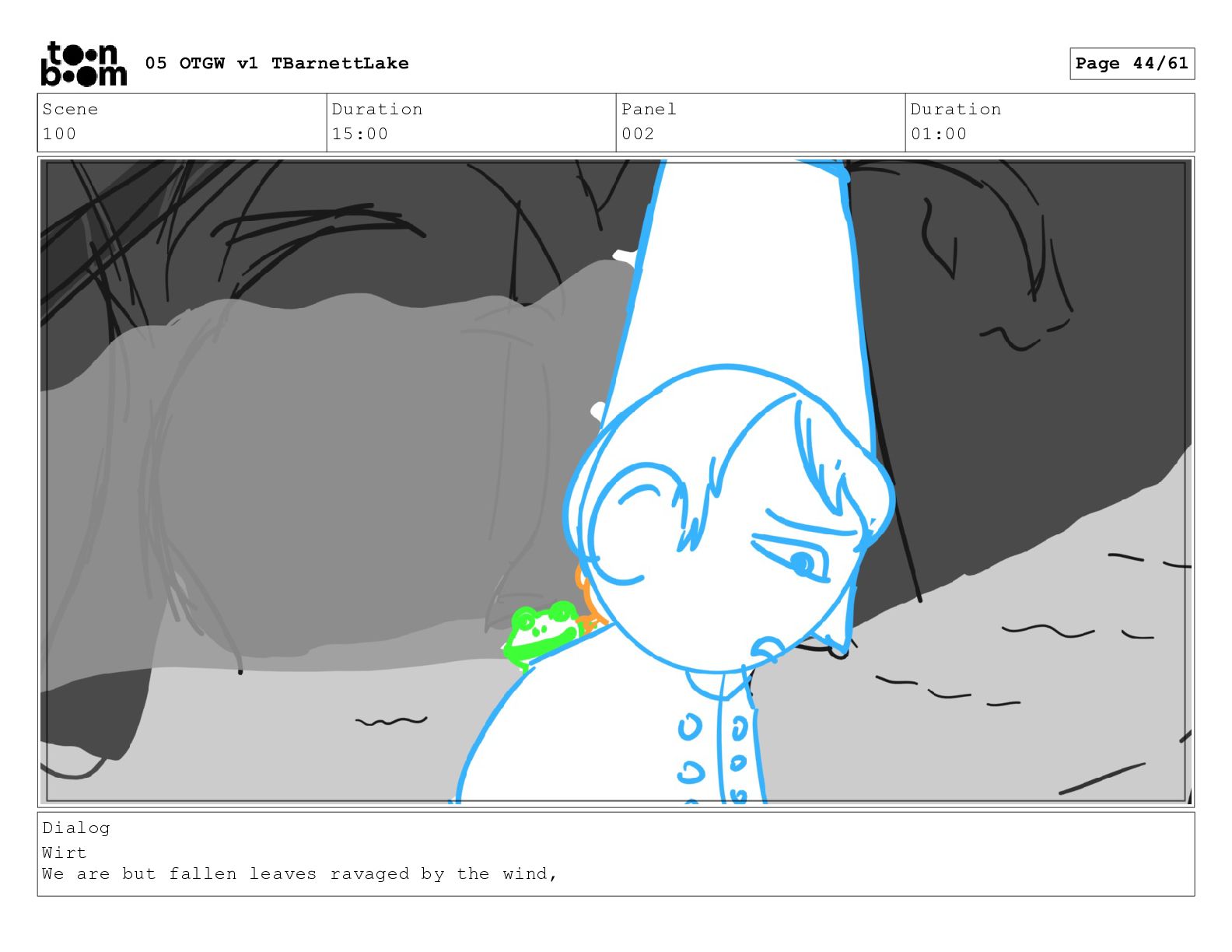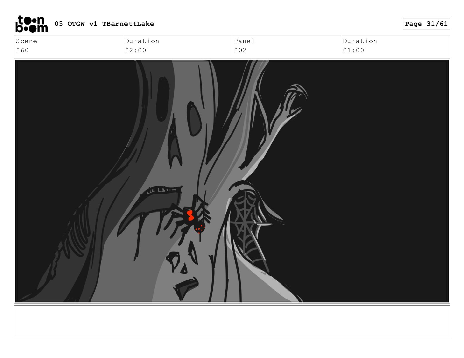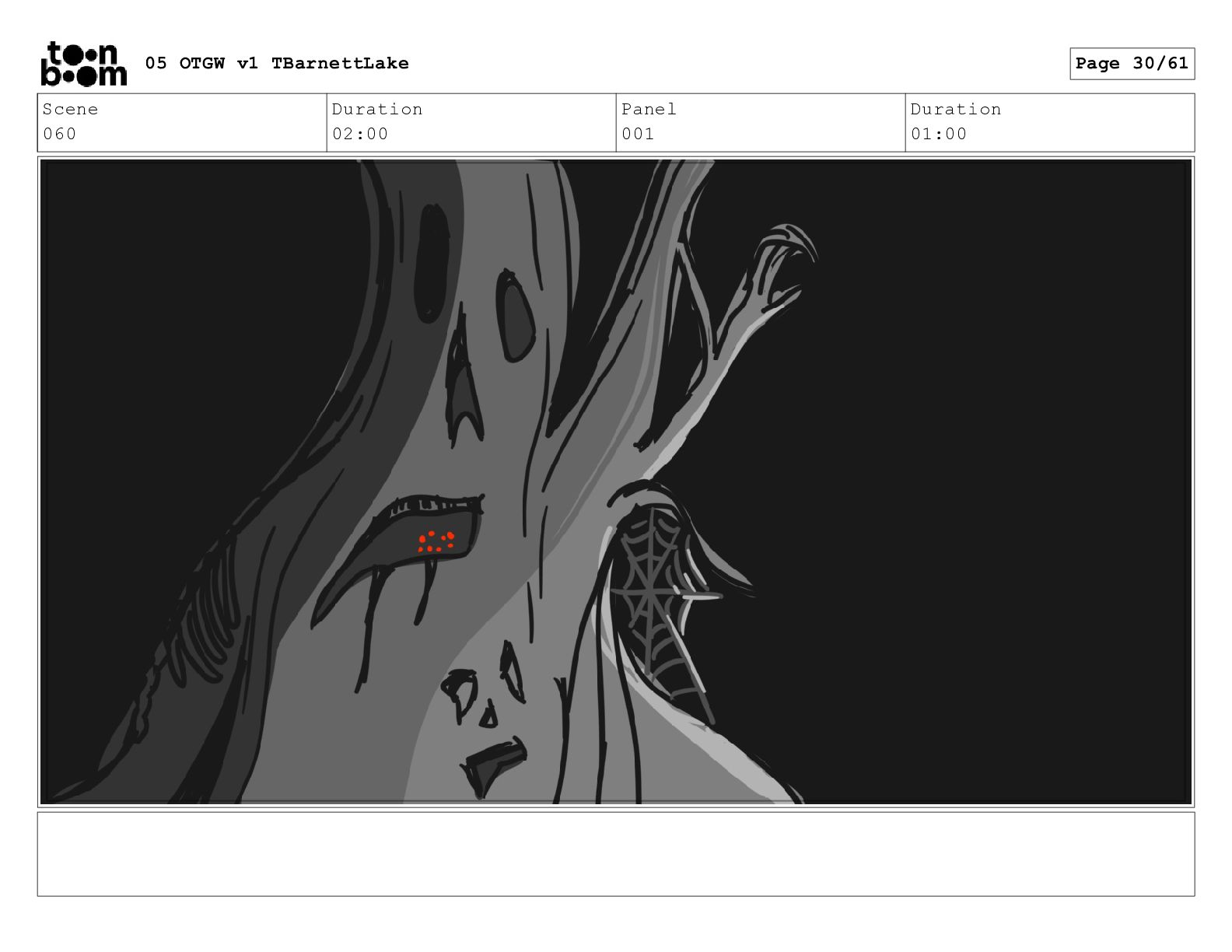(continued; building into a deep sense of existential terror) We are the sullen driftwood long forgotten by our mother trees pushed ever out by the river and int 05 OTGW v1 TBarnettLake Page 47/61